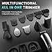 [Multi-Functional Trimmer Kit & Gifts for Men]:This trimmer has a precise shaving system design. The barber kit comes with 6 accessories: full-size trimmer/precision trimmer/design trimmer/body trimmer/nose hair trimmer/micro shaver, which can meet all your daily needs. Also equipped with 5 guide combs (3, 6, 9, 12mm, sideburns combs) can provide more choices for your cutting style. It's a good choice as fathers day gift, birthday, christmas, valentines day gifts for your husband, father.