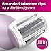 Rounded trimmer tips in front of and behind the shaving foil keep the shaver gliding smoothly over your skin