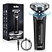 【Smart Travel Lock & Portable 】: The small, lightweight and safety travel lock makes this mens shaver suit for travel or business trips. The men razor also supports corded and cordless use. Smart travel lock function will be activated by pressing and holding the on/off button for 3 seconds, avoiding accidental opening during the journey and avoiding unnecessary power consumption.