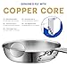 High performance. 3 layers of stainless steel, aluminum, and copper offers a rapid, uniform heat conductivity and controlled even heat distribution. It makes the most of copper's natural ability to transfer and distribute heat. Alloy is as follows: Interior stainless steel (16%), aluminium (64%), exterior brushed copper (20%). 18/10 stainless-steel interior won't react with food and ensures foolproof browning and easy cleanup