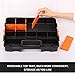 Made of durable and heavy duty plastic material. Well design with professional looking. An attractive color combination in black, clear lids, orange closure and divider pieces