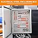 [Made of stainless steel]: 11.8" H x 9.8" W x 5.5"D, the electrical box is made of professional stainless steel, the bottom hole is precise, there is no blemish edge, the cut is flat and smooth without cutting hands, and will not scratch Injury cables, black and white gland nuts are used to distinguish incoming and outgoing wires, and the surface is polished to prevent rust and rain corrosion.