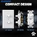 ✅【Sleek and Modern】Featuring a white decorator rocker design with smooth and quiet paddles, this switch is both elegant and modern. It's perfect for those who want a simple and stylish switch that's easy to use. With easy-to-control paddles, you'll never struggle to turn your lights on or off again. Plus, its slim design allows for multiple switches to be installed in the same wall plate.