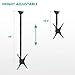 Adjustable TV Ceiling Mount Design: The ceiling mount fits most displays up to 65 inch, 110lbs, with mounting holes patterns from 100x100 to 400x400mm. It can tilt down 25°, left-right swivel range of 360°, rotate both ways 3°. The height adjustment is from 18.5 to 35.2 inch.