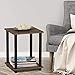 DIMENSIONS: End table size: 24" W x 24" D x 23" H; Bottom shelf size: 18.5" W x 18.5" D x 0.6" H; Distance between shelf: 10".