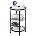 【ROUND TABLE】Round Side Table Dimensions: 24'' H × 15'' L × 15'' W. Round shape end table will protect your knees from bruises accidentally caused by sharp corners and create a safer environment for children and your pets to some extent. The industrial look of the black iron frame is complemented by the 3 tiers rustic wood-like desktop of the side tables, the lovingly designed vintage style exudes a touch of classic flair