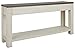 HIGH STYLE: Whether behind a couch/sofa, at the end of a hallway or against an entry wall, this table looks at home. Two-tone finish includes an antique white base and weathered oak finished top
