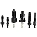 ALL-IN-ONE COMPRESSION TESTER KIT: 1x spring buckle gauge, 1x straight rubber cone end adapter, 1x curved rubber cone end adapter, 4x brass adapters with metric male fittings & O-rings: M10, M12, M14, M18; 1x extension hose (14" length)