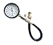 ALL-IN-ONE COMPRESSION TESTER KIT: 1x spring buckle gauge, 1x straight rubber cone end adapter, 1x curved rubber cone end adapter, 4x brass adapters with metric male fittings & O-rings: M10, M12, M14, M18; 1x extension hose (14" length)