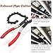 Exhaust pipe cutter tool features pipe cutter chain w/ cutting wheels, exhaust pipe cutter w/ cushion grips, can be used as PVC cutter or copper pipe cutter. Replacement for exhaust pipe cutter chain, tailpipe cutter, tail pipe cutter, chain tail pipe cutter.