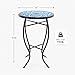 FUNCTIONAL ART: This 14 inch wide mosaic side table and plant stand offers a stunning combination of a colorful ceramic tile top with an elegantly curved black steel frame, blending with any room decor from boho to contemporary