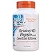 BETAINE HCL/PEPSIN/GENTIAN BITTERS contains three nutritional factors that perform complementary functions designed to support the efficiency of the digestive process. Supplementing with Betaine HCl helps support the stomach’s digestive capacity. Pepsin is an enzyme produced by the body to digest protein-containing foods in the stomach.