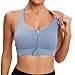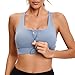 【EASY ON/OFF ZIPPER FRONT CLOSURE】- This Zipper Front Sports bra with a handy security locking zipper right between the boobs, very easy to zip on/off, so that no need to worry about wrestle yourself out of a sweaty sports bra after high-intensity exercise. Comfortable, convenient and free. The zipper locks in place when you lay it flat, there are hooks inside the zipper for added security.