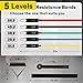 CUSTOMIZABLE - 5 color-coded, 48-inch bands with attached comfortable foam handles provide various strength levels and exercises in one set: Green (2-5 lb), Yellow (5-8 lb), Red (8-12 lb), Blue (12-16 lb), Black (16-20 lb)