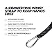 Features a metal carabiner clipping system for attachment to soft-grip handles or ankle straps