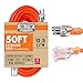 MORE VISIBILITY, SAFER WORK SITE - This heavy-duty extension cord is lighted end letting you know when the power is on, and highly visible (OSHA compliance) with bright orange color. SLIP RESISTANT DESIGN ensures continuous power