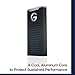 Ruggedized design with a forged aluminium body protects the SSD Core and dissipates heat. Its IP55 rating lets you know that it’s water- and dust-resistant while its Durable, silicon rubber coating delivers higher impact resistance