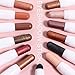 【12 PCS Classic & Buildable Brown Eyeshadow Stick】- Brown Eyeshadow cream are various,reddish brown, mud brown, orange brown...and there is a highighting champagne eyeshadow and eye liner stick color that can be used as a highlight.Transparent color cap is affixed to each lid for easy identification.