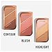 Contour and Highlight Made Easy: First, swipe the deeper shade along the face’s natural contours, then apply the lighter shade to the highest points of the face to instantly brighten and highlight