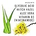 TONE & CLARIFY - This unique formula is complemented by a potent blend of aloe, rose hip, citrus, chamomile and sugar cane extracts for toning, and clarifying benefits.