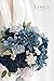 Package: Bridal bouquet x1 (approx. 11" wide by 13" tall), attached with 13-inch navy blue and white chiffon ribbon.