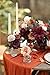 🌹Product Specification:semi-cactus dahlia: burnt orange x3 (assorted size),waterlily dahlia: vibrant orange x2; spider mums: burgundy x3 (assorted sizes), plastic spider mums: burnt orange x2 (assorted sizes);Little rose:creamx5,:rose:brick red x4; peony: champagne x3;included accessories: laurel leaf x4, golden leaf x2.