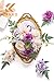 Material: Made of high-quality artificial flowers and greenery. Silk flowers include semi cactus dahlia, Austin rose, Vendela rose, petite peony, morning glory, and delphinium; Foam flowers include rose, petite rose, rosebud, avalanche rose, gardenia; Greenery includes eucalyptus leaf, seeded oval eucalyptus, sage vine, and some other accessories.