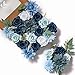 🎁【Package Details】Duty Bule Semi-cactus Dahlia*1(5.5") Dusty Sky Bule Semi-cactus Dahlia*2(4.5") Sky Bule Semi-cactus Dahlia*2(4") Navy Bule Rose*7(3.5") Light Bule Rose*3(3.5") White Rose*2(3.5") Little Delphinium *9(1.25") Wheat Ears Flowers*3 Eucalyptus Stems*2 Nandina Plants * 2.Ribbons are not included in each box set.