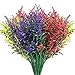 [ 10 Pcs Artificial Lavender Flowers ] Package includes 10 Bundles artificial flowers. 5 Colors are available, purple, white, yellow, red, mixed colors, 10 pack each. Each flower is 15" height, each plastic flowers have 7 flowers heads, 7 flexible stems and 56 bushy leaves.