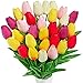 Quantity: Package includes 28 Pcs Multicolor Tulips Artificial Flowers Faux Tulip Stems Real Feel PU Tulips. These are individual stems, easy to arrange. You can use them alone in single stem flowers or in combinations.