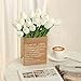 [Faux Tulips Bulk] Package contains 18pcs white tulips. The total height is about 13.5”/ 34cm, the flower head is about 1.8”/ 4.5cm in length and 1.4”/ 3.5cm in diameter.