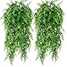 [Package includes] 2 packs of green artificial hanging plants, and the total length of the artificially hanging plants is approx. 3.6 feet(3-5/8ft). About 160 fake green leaves per pack, a total of 320 leaves. Each green leaf has many stems that make it look very vivid and three-dimensional.