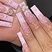【Press on Nails Long Coffin】Package with 24 pcs pink long coffin fake nails, 1 pcs jelly glue stickers, 1pcs nail file and cuticle stick. Press-on Nails are safe on natural nails and removal is hassle free.