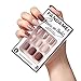 Package Included: Total 30PCS press on nails short round: 12pcs matte press on nails brown, 12pcs matte press on nails nude and 6pcs glitter champagne pink, 36pcs adhesive nail tabs, 2g false nail glue, 1pcs wood stick, 1pcs mini nail file and 1pcs cotton pad. Packed together in one box, easy to carry and storage. Note: The matte press on nails have 12 different sizes pre-numbered 0-11 on the tips for easily find but the glitter press on nails only have 3 sizes pre-numbered 8.9.10 for match.