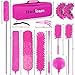 【Microfiber Dusters for Cleaning】Thinklearn 14PCS House Cleaning Kit includes 1*extendable long pole,5 *interchangeable heads (2 Bendable Microfiber Duster Head, 1 Bendable Chenille Duster Head, 1 Cobweb Duster Head and 1 Flat Crevice Brush),1*mini duster with extendable pole,1* window blinds brush and 1*cloth,1*chenille cleaning towel,1*grout tile joints brush,2*mop slippers and 1*big pink storage bag.These cleaning supplies meet your detailed and comprehensive household cleaning needs.