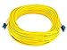 The cable has color-coded Dual LC connectors on each end with 5 μm core and 125 μm cladding diameter