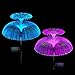 【Unique Jellyfish Design & 7 Color Changing 】The outdoor solar garden lights is made of plastic optical fiber injection molding. Corrosion resistance, strong light transmission, the overall appearance is like jellyfish. These yard lights will automatically light up in the dark with 7 colors gradually changing in sync, eye-catching and relaxing.