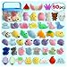 MOCHI SQUISHY TOY- package included 80 pcs in total, come with vivid color & adorable shapes, made by high quality tpr material. cat, elephant, panda, dog, unicorns etc. all kinds of tiny squishy toys random. You'll love these mini toys.