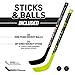 STICKS + BALLS INCLUDED: This hockey goal set comes with (2) mini foam hockey balls and (2) 20" knee hockey sticks, which are about 5" longer than standard mini hockey sticks