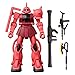 This Zaku was piloted by Char Aznable who customized it with the stricking red color. Chars Zaku is equiped with a machine gun, bazooka, shoulder shield, and the heat hawk, making this a heavily armed force to be reckoned with.