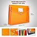 【Unique Design】Cloth over-lock and metal reinforced buckle at both the corners and bottom edge, offers double times service life. The snap button closure ensures your files safe. The expanding pockets feature a card slot, which help you classify your important file. Save your time to find document. Translucent colored envelope keep contents visible, which can help you easily identify document you need. It can stand alone at your shelf due to wide bottom design. keep everything in organized.