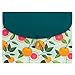 This thoughtfully designed folder features uplifting details like a fruit patterned, aqua surface, a teal lid and gold-tone brass hardware