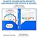 【PORTABLE FILE FOLDERS】Folders with pockets are standard letter size, each pocket can store up to 50 pages of paper. The plastic folder organizer prevents the folder from wrinkling, its very durable and sturdy for easy portability. There are clear pockets on the front of the folder for easy insertion of instructions.