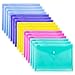 Colorful Plastic Envelopes: 12 pcs, 6 bright colors(2 pcs for each color), yellow, green, blue, purple, rose red, white, add something vibrant to your surroundings, make you feel better; also help to sort out different kind of documents, convenient for distinguishing, save time to find out what you need.