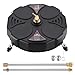 HIGH EFFICIENCY AND EASY OPERATION: The surface cleaner is installed with 3 wheels that help power washer surface cleaner move easily and flexible on large area. Flexible bristle skirt protect adjacent surfaces and resist water splash out while working.with dual pressure water jets design, it help reduce cleaning time by up to 60% compared with conventional nozzles.