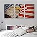 Wooden Artwork for Wall: This wooden landscape artwork shows a house with America flag located in the countryside, with a feeling of returning to nature