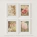 PINK SHABBY CHIC FLORALS: This pink and off white set of flower prints in a pretty shabby chic style is perfect for adding a touch of femininity to any room. The eye-catching and stylish flower prints are a great way to add a vintage floral look to a nursery, bathroom, or bedroom