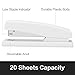 FASTENS 20 SHEETS – This high-performing stapler fastens up to 20 sheets of paper and works best with standard sized Swingline S.F. 4 Premium Staples. Staples have standard 1/4” length legs.