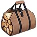 [ Design - Attractive & Practical ] - Half closed sides bag designed to carry small pieces of logs, to keep wood chips inside and not scattered on floor; The upper no-end walls design works great to carry firewoods with any sizes; The handles with leather pads give you more comforts even carrying a fair amount of logs together.