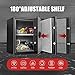 3.【REMOVABLE SHELF & LED SENSOR LIGHT】: The removable shelf can help you organize important items easily, and you can take it in or take it out according to your needs. The 1.5 cubic capacity safe can meet your daily storage needs and is very suitable for protecting your valuables. The built-in Led light provides increased visibility so you can easily access your valuables in the dark.